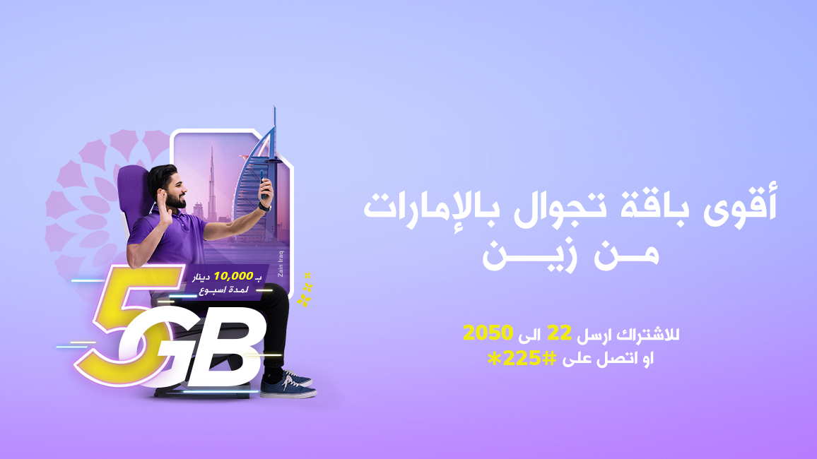 باقة الانترنت للتجوال 5 كيكابايت بـ 10 الاف دينار لمدة اسبوع