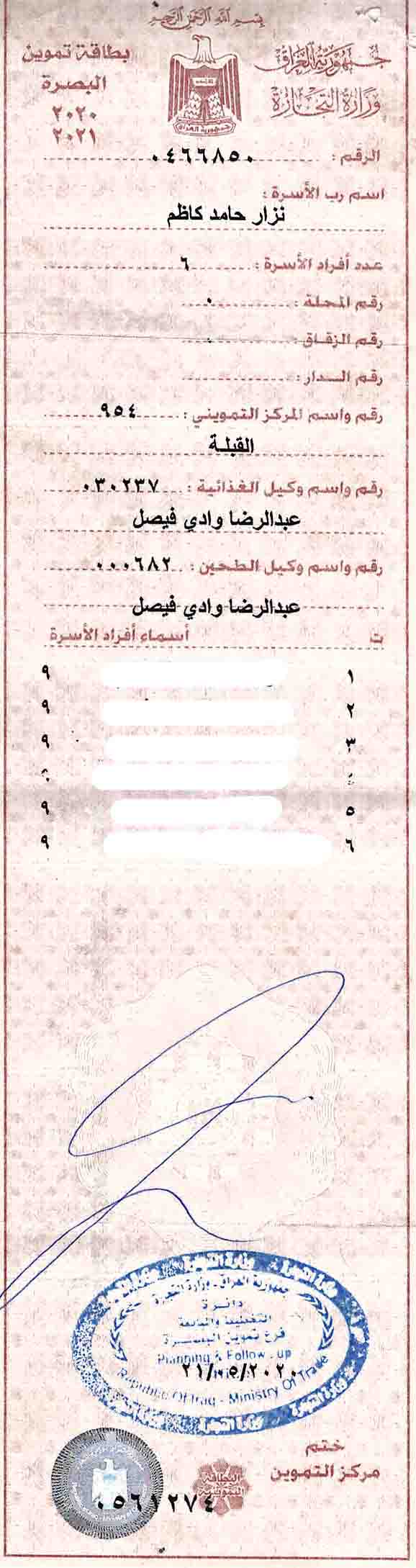 بطاقة تموينية ( مستمسك مفقود )