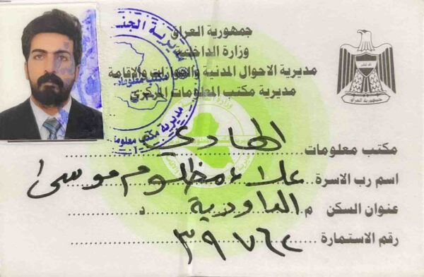 على صاحب بطاقة السكن بالاسم ( علاء مظلوم موسى ) مراجعة مكتبة لارا لاستلام بطاقة السكن الاصلية الخاصة به.