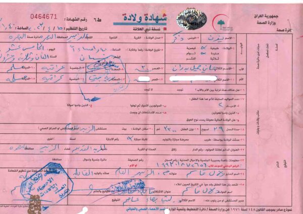 على صاحب بيان الولادة بالاسم ( يزن هاني جميل ) مراجعة مكتبة لارا لاستلام بيان الولادة الاصلية الخاصة به.